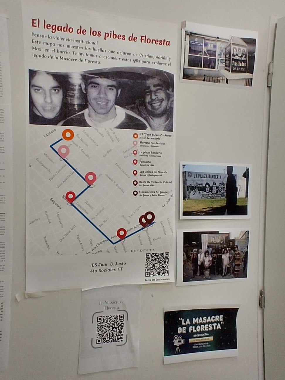 También hicimos un trabajo en el 2024, para recopilar los espacios de memoria vinculados a la Masacre de Floresta y los espacios donde se recuerda al triple crimen. Se trabajó sobre cómo impactó el hecho en la memoria barrial, junto con la Asamblea de Floresta y con la familia de uno de los chicos.
